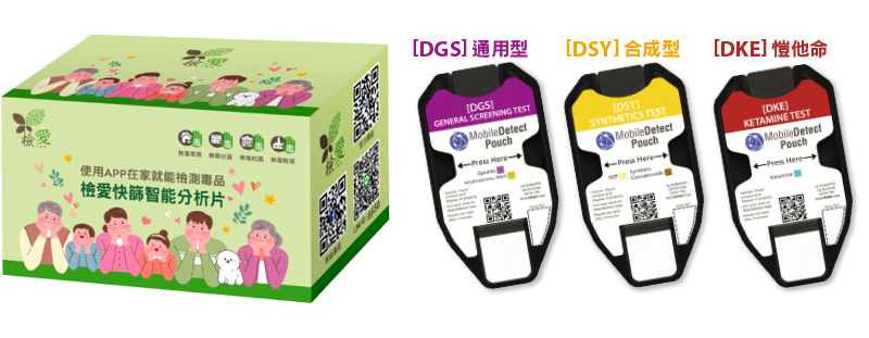 [說明]多種的分析片對應檢測不同的毒品;若您採用 「DKE-愷他命型」分析片檢測結果「無偵測」,表示未偵測到愷他命(K他命)毒品;建議可再使用「DGS-通用型」分析片,可同時檢測海洛因、搖頭丸、可待因、甲基安非他命、安非他命、羥二氫可待因酮等,再次確認是否有其他毒品成分存在。