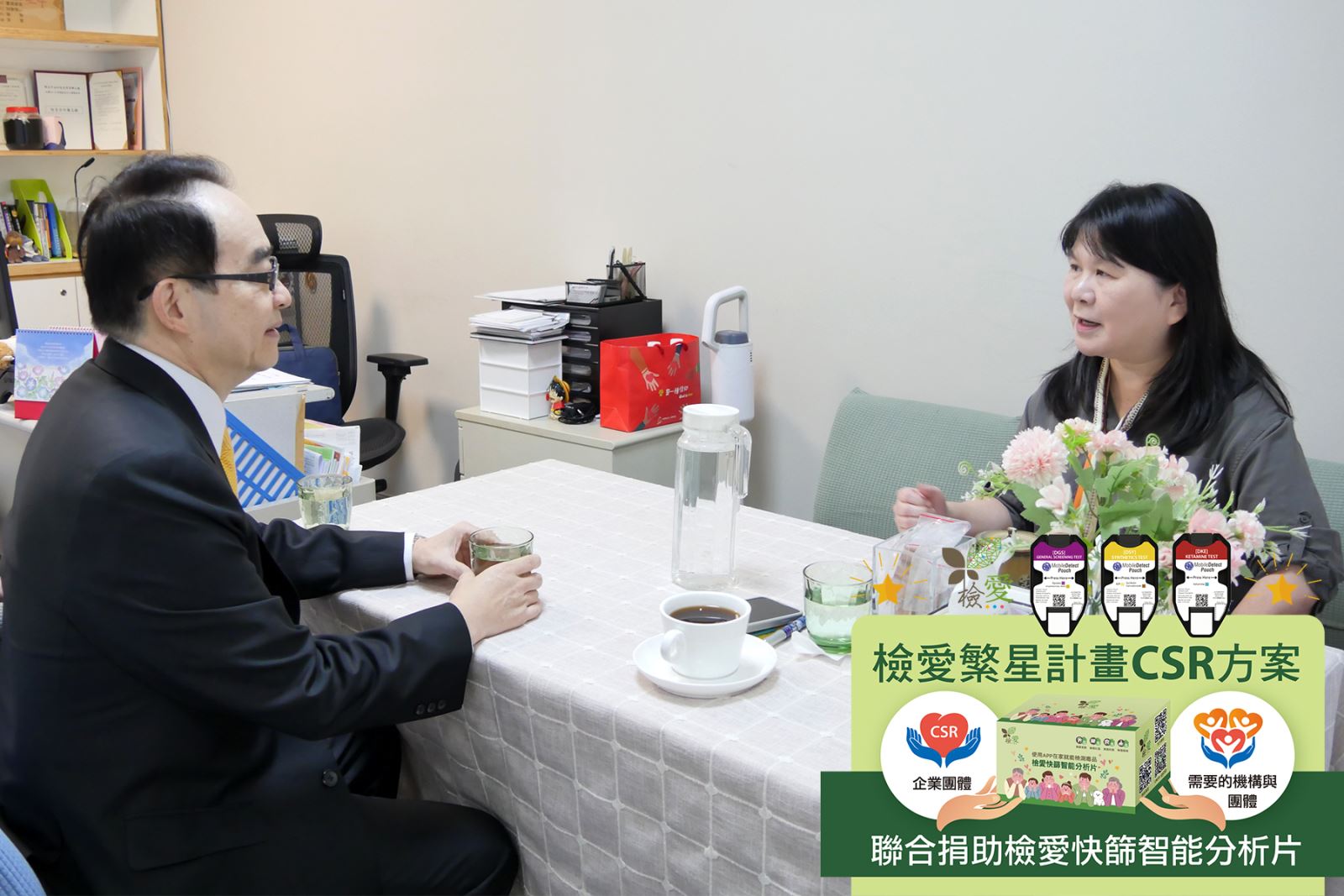 為提升毒品預防效能,檢愛持續推動繁星計畫CSR方案!攜手資訊服務廠商驊宏資通(6148)於12月4日由ESG委員會代表,前往拜會位於新北市中和區的「社團法人中華隱基底全人關懷協會」,並捐出價值五萬元,共240片的檢愛快篩智能分析片。